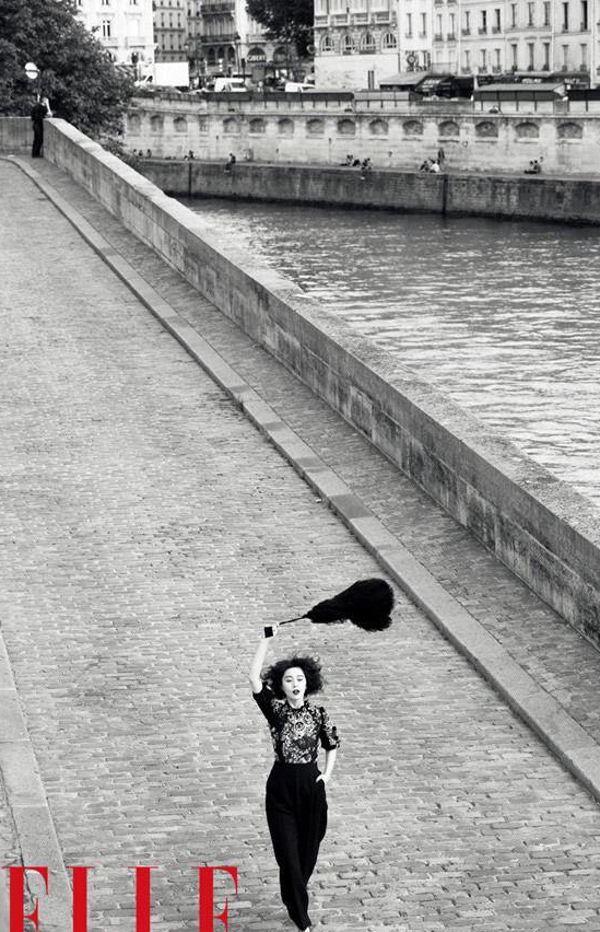 《ELLE》9月下封面范冰冰穿得都是celine2012秋冬系列枚红&黑色拼接皮草大衣。巴黎街头她风情万种,美丽绽放,展露出性感华贵的霸气风范。