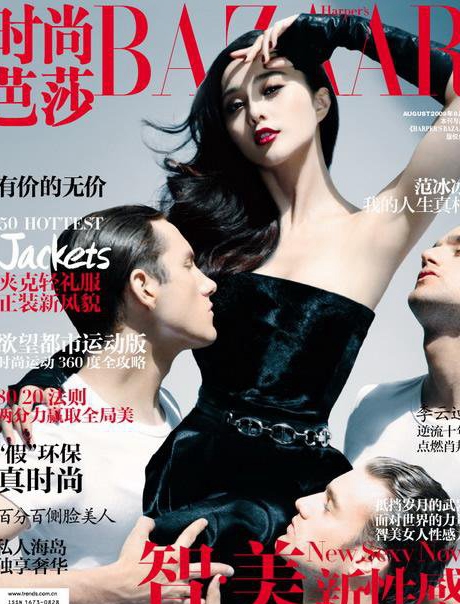 近日,范冰冰登上时尚杂志《时尚芭莎》2009年8月号封面,化身宠儿被外国美男簇拥。