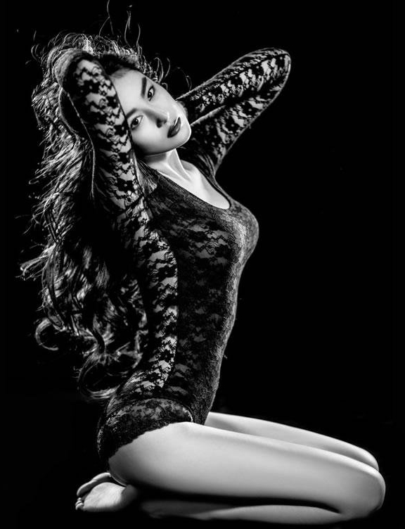 近日,张馨予拍摄一组黑白写真,身穿黑色蕾丝服勾勒出完美身材,并且大秀笔直美腿,一头飘逸卷发更是妩媚迷人。