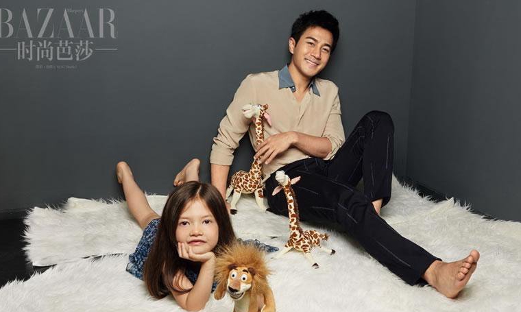 刘恺威《时尚芭莎》写真 与萝莉对视充满父爱